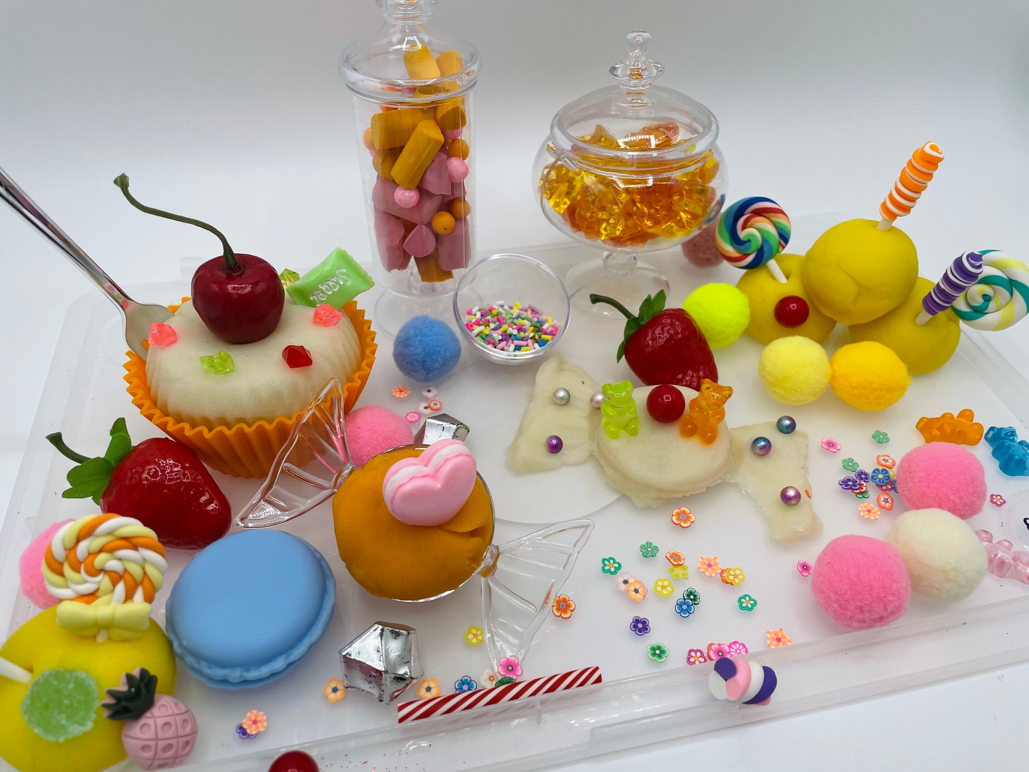 The world of sweets. You can dive into the game with Playdough. Bake your own cake or a cupcake and top it off with a variety of delicious treats. Strawberries, cherries, chocolates, lollipops, gummy bears and sweet candies. All of this can be found in a sweet toy set with Playdough from Wizard of Crafts