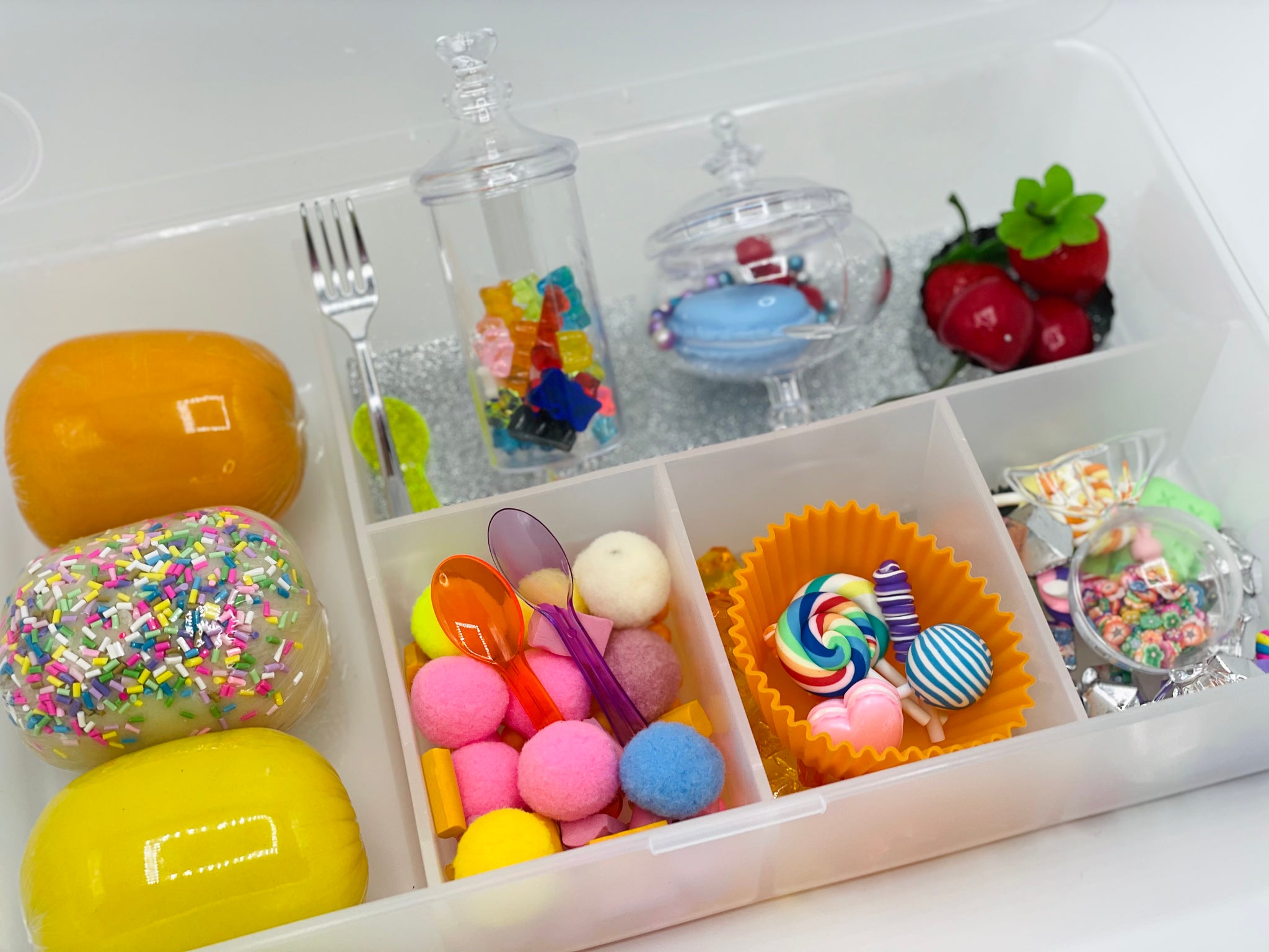 - Plastic divided box with a lid and more!
